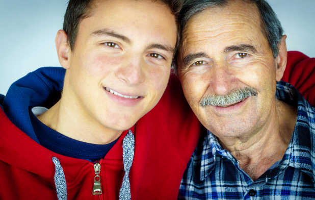 Herr Karl mit seinem Enkel Kevin, dank dem er wieder ohne Schmerzen lebt.